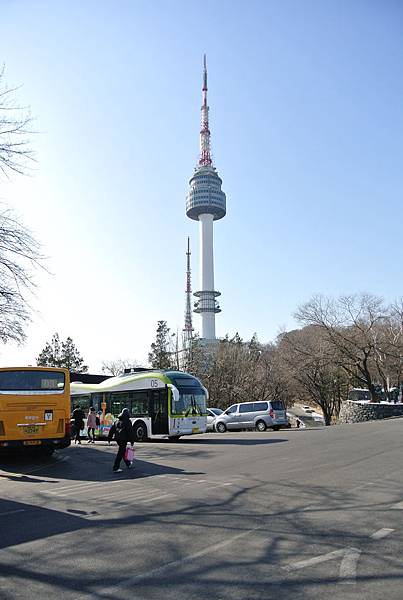 公車爬完了陡坡來到了停車場,換我們要爬上一段好漢坡,才會到首爾塔的底部廣場
