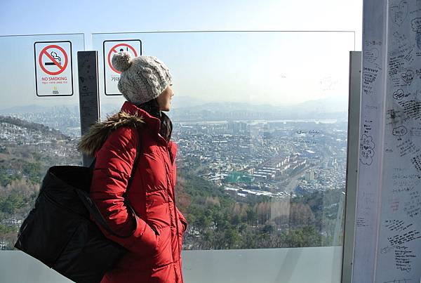 面對首爾塔的右手邊有一個棧木平台,由售票亭後方的小通道上去,