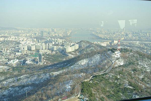 其實首爾塔坐落於南韓的南山,我覺得這個南山蠻特別的就是,他幾乎是旱地拔蔥似的矗立在平原上